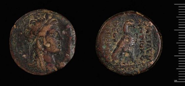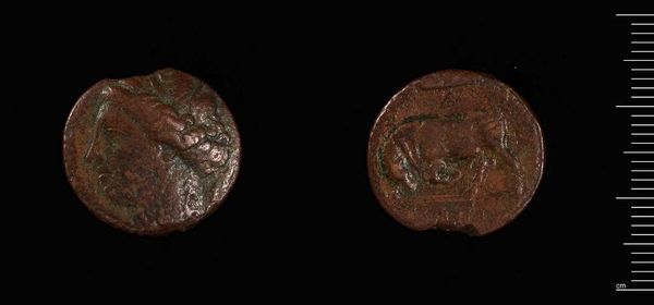 Curator: Let's turn our attention to this coin from Syracuse, attributed to Timoleon. It weighs around 18 grams. What do you make of it? Editor: It looks like two rusted chocolate cookies! I see... a horse, maybe? Worn by time and touch, a tangible link to a long-gone world. Curator: Indeed. The horse was a powerful symbol, particularly for Syracuse. The imagery speaks to wealth, power, and civic pride. Editor: It’s amazing to think of who held this object. What fears and triumphs did it witness? How did it end up here? A little portal to the past. Curator: Absolutely. And a reminder that even the smallest object can carry enormous cultural weight and resonate across millennia. Editor: Right, and it just makes you wonder... what stories remain untold, still hiding within this little coin? It’s like holding potential itself.