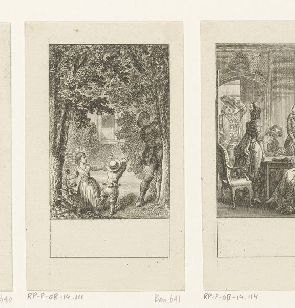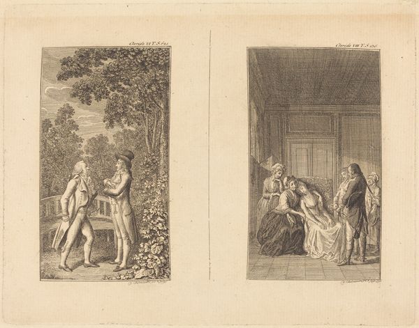 This print, Amalia wekt Graaf Moor, was made by Daniel Nikolaus Chodowiecki, using the technique of etching. Here, lines are incised into a metal plate with acid, allowing for the creation of an image of remarkable intricacy. The material qualities of this print – its fineness of line, its tonal range achieved through hatching, and its overall miniaturization – are all direct consequences of the etching process. The artist’s mastery is evident in the precision with which he captures details of domestic life and fashion. It is a handcrafted image, yet designed for reproduction and wide circulation. Consider the social context: prints like these were part of a burgeoning culture of information and exchange in the 18th century. They served as illustrations for books and periodicals, and were also collected as art objects in their own right. We see both high and low culture coming together, as this detailed etching was made to appeal to a broad audience.