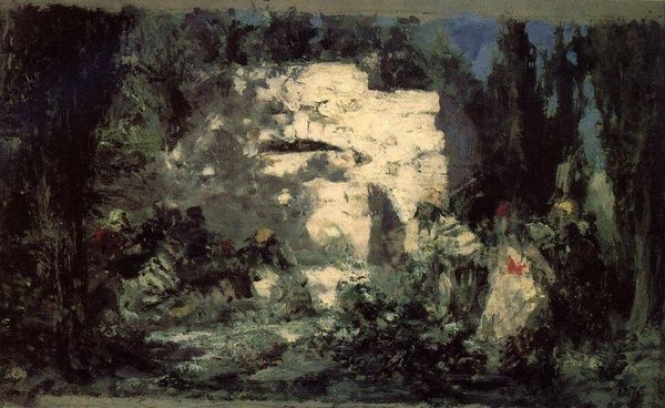 Konstantin Alexeevich Korovin created this oil painting titled, 'Spanish squash'. The painting immediately strikes one with its vibrant yet murky palette and energetic brushstrokes. Korovin’s use of color is particularly notable. The glowing reds of the lanterns contrast against the dark greens and browns of the surrounding environment, creating a dramatic interplay of light and shadow. The brushwork is loose and impressionistic, giving the scene a sense of movement and fleeting moments. Korovin destabilizes conventional representation through this technique. The scene blurs the boundaries between figuration and abstraction. The faces and forms of the figures are only vaguely defined, integrated within the setting itself. This challenges fixed meanings, inviting a reevaluation of perception and representation. The overall effect is one of dynamic tension, where the visual experience becomes as important as any narrative content. Korovin offers a glimpse into a transient world, capturing the essence of a fleeting moment.