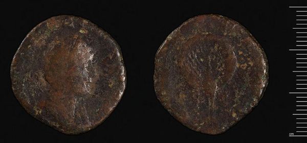 Curator: Here we have a Dupondius of Titus for Julia Titi, a bronze coin from ancient Rome, now held in the Harvard Art Museums. Editor: It looks worn, almost like a tiny, ancient sun-baked desert. I wonder what stories it could tell if it could speak. Curator: Indeed. On one side, we see the portrait of Julia Titi, daughter of Emperor Titus, an image meant to project power and legitimacy. It's fascinating how these coins served as a form of mass communication. Editor: It's strange, isn't it? How an object designed to facilitate trade also becomes this miniature monument, freezing a moment in dynastic ambition. The layers of meaning packed onto this small disc...it’s quite something. Curator: It is, a tangible link to a distant world. Editor: A world where even beauty was currency. I'm left pondering what she actually thought of all this, being immortalized on money.