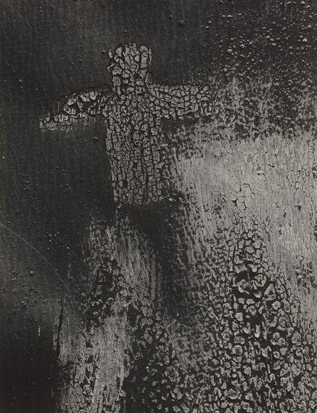 Aaron Siskind created this photograph titled ‘Jalapa 39 (Homage to F.K.)’, sometime in the mid-20th century. The image, a gelatin silver print, strikes us with its stark contrast of black and white. The photograph is a close-up of what appears to be heavily painted marks on a textured surface, possibly a wall. The composition is dominated by bold, dark lines that intersect and overlap, creating a sense of depth and complexity. The texture of the underlying surface adds another layer of visual interest, suggesting a rough, weathered quality. Siskind’s photograph transforms mundane, accidental markings into a powerful abstract composition. Siskind was deeply influenced by abstract expressionism, and this work reflects his interest in finding abstract forms in the everyday world. The ‘Homage to F.K.’ in the title suggests a tribute to Franz Kline, another artist known for his bold, black and white abstract paintings. This photograph challenges our perception of space, surface, and representation. The photograph invites us to see beyond the literal subject matter and to appreciate the formal qualities of line, texture, and composition.