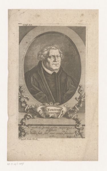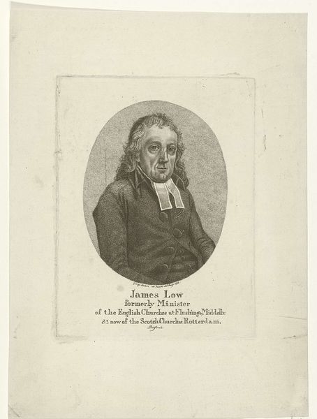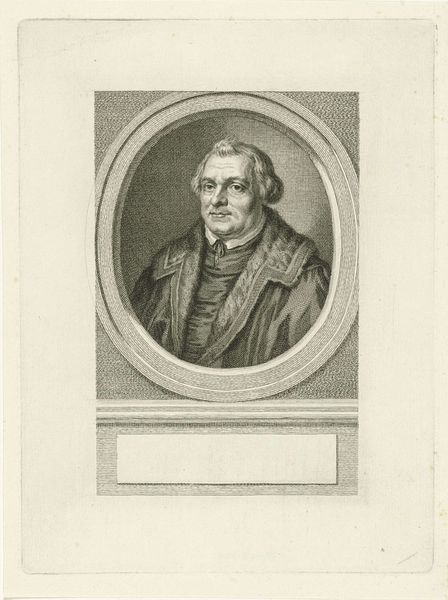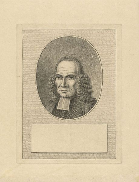 Ernst Willem Jan Bagelaar made this print, *Portret van Joannes Stafford*, sometime in the late 18th or early 19th century. Here we see a cleric, Joannes Stafford, with a crucifix to his left and a book in his hands, presented in an oval frame as if he were a Roman emperor. The print was made in the Netherlands, a place with a rich and complex religious history. During this time, the Dutch Republic was undergoing significant political and social changes, influenced by Enlightenment ideals and, later, the French Revolution. The presence of religious iconography and the somewhat archaic style of the portrait might suggest a conservative stance, or perhaps an attempt to connect with a longer tradition of religious authority. Prints like this served to create and reinforce social bonds within religious communities and to project an image of piety and erudition. To understand this image more fully, one might look to archives of religious institutions and genealogical records. The history of art is always contingent on these wider social and institutional contexts.