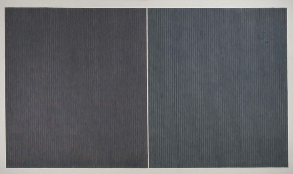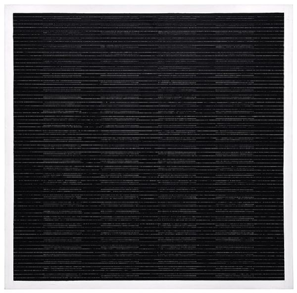 Editor: So, this is an "Untitled" print by Wade Guyton from 2007. I find the repetition of these horizontal lines, almost like barcode stripes, pretty mesmerizing. They feel cold and calculated, yet there's this weird human element of slight imperfection. What do you see in this piece? Curator: It strikes me as a ghost in the machine. Consider the historical weight of the monochrome, particularly in the 20th century. What did those artists seek to achieve through stark reduction? Malevich, for instance, wanted a kind of spiritual purity through the absolute. Guyton, using a flawed digital printer, suggests the opposite. What spiritual resonance does a glitch possess? Editor: That's a great point! It feels very anti-spiritual, almost a rejection of that whole earlier movement. The imperfections create noise rather than clarity. Curator: Exactly. We project meaning onto everything, a kind of primal drive. Consider these lines not just as aesthetic choices, but as failed attempts at perfection. The "error" then becomes the very essence of the artwork. Does this idea resonate within our current digital landscape? Think about data corruption, glitches in the system – do those things inspire fear or wonder in us? Editor: I think it's a mix. There's definitely frustration, but also a kind of acceptance. It's just part of the digital experience. The glitches make it seem more authentic and, well, more real! It definitely reflects our experience in the digital age. Curator: Precisely. Guyton, whether intentionally or not, taps into our collective understanding of a technology that promised seamlessness but delivers imperfection, becoming a potent symbol of our era. Editor: This has been such a fresh way to look at digital art; now I see the glitches as intentionally invoking the feel of modern media. Curator: And that intentionality, whether conscious or unconscious, opens doors to understanding the work's lasting resonance.