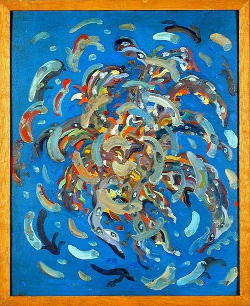 Stanisław Ignacy Witkiewicz, also known as 'Witkacy', made this pastel drawing, titled Nova Aurigae, at an unknown date. You can see the color kinda vibrates, doesn't it? It's as if Witkacy wasn't just making marks, but also conjuring up a whole sensation. The texture! Look at that blue, feels like a dreamscape, and then these strokes of yellow and red cutting through, almost violent. And that face—is it serene or tormented? The eyes give me the chills. It's like he's scratched right into the surface of reality. The way those spirals seem to pull you in, like whirlpools, reminds me of Van Gogh's Starry Night. Both reach for something beyond our grasp. Art is like that, it invites us to get lost.
