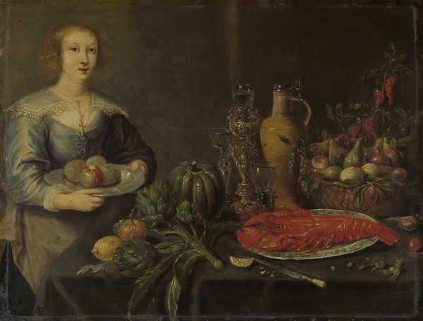 This family portrait was painted anonymously and features Pierre de Moucheron, his wife, their eighteen children, son-in-law, and first grandchild. The composition is strikingly linear, dominated by the horizontal table and frieze-like arrangement of figures. This structure creates a sense of order and rigid formality, with each individual rendered in meticulous detail. Notice how the artist used contrasting dark colors for the clothing against the lighter faces to create a pattern, guiding our eye across the tableau. The texture is smooth and polished, giving the artwork a glossy, almost porcelain-like finish. This piece functions less as a candid depiction of family life and more as a symbolic representation of lineage, status, and prosperity. The arrangement of figures and the inclusion of certain objects, like musical instruments, signify the family’s cultural and social standing, emphasizing the values of genealogy and societal position. It’s a fascinating insight into how families sought to portray themselves, solidifying their place in history and society through art.
