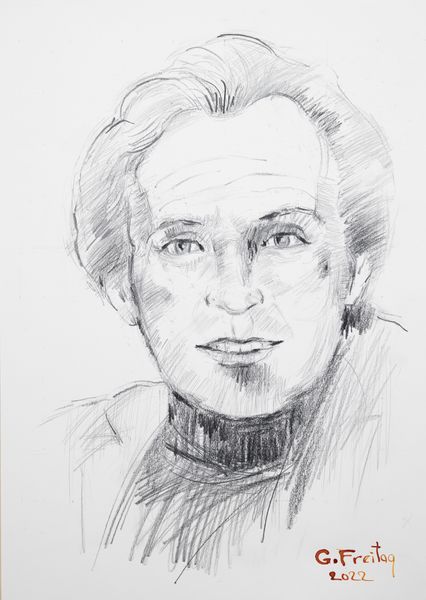 Editor: Here we have a painting identified as the "Bernie Fuchs portrait." The information we have suggests it's an oil painting. I'm immediately struck by the bold brushstrokes and how the artist uses light and shadow to define the subject's face. It has a very masculine feel to it. What stands out to you as you look at the painting? Curator: Immediately, one notes the application of paint itself. The artist has not sought to efface the materiality of the medium; rather, the oil paint is laid bare, evident in its texture and gestural marks. Observe the planar construction of the face achieved through varying shades of brown. Do you see how the forms emerge not through meticulous blending, but rather through a juxtaposition of distinct tonal fields? Editor: Yes, I see what you mean about the tones. They are really quite separated, giving the face a strong structure. Is that separation part of why it comes across so masculine? Curator: Perhaps indirectly. The fragmentation emphasizes a certain ruggedness. However, also consider the compositional balance. The figure is positioned asymmetrically, offset to the right. Note, also, the gaze directed off the frame, thus implying a space beyond the canvas, yet denied to the viewer. How does this relational structure affect your perception? Editor: That’s interesting. I guess I didn’t consciously register that the subject isn’t engaging with us directly. It does give a sense of... distance? Curator: Precisely. A carefully constructed distance, achieved not through psychological expression, but rather through formal arrangements. We might consider it as an exploration of portraiture as object, as construction. Editor: This has really reshaped how I saw the painting. Focusing on the formal elements gives a completely new depth. Curator: Indeed. By considering these elements, we arrive at a deeper understanding of the artist's decisions and the resultant aesthetic impact.