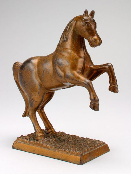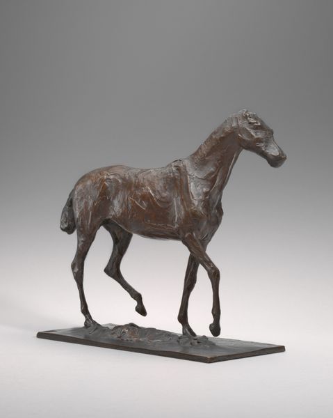 This sculpture, titled "Horse Walking," was crafted by Edgar Degas, likely in the late 19th or early 20th century, using wax and other materials. Degas’ choice of wax is interesting, as this would typically be used for preparatory models rather than finished artworks. It allowed him to rapidly capture the animal’s anatomy and gait; you can see the marks of his fingers all over the surface. It is a relatively low-cost material and its capacity for capturing detail makes it ideal for modeling. While Degas was associated with the high-art world of Impressionist painting, he was clearly willing to engage with more process-based, hands-on approaches to making. It’s almost as if he wanted to get closer to his subject, to feel the horse's movement through the act of modeling. The rawness of the wax brings us closer to Degas's artistic process, and makes us consider the relationship between fine art and craft.