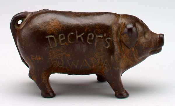 This charming little piggy bank was created by an unknown artist. Its smooth form is decorated with a series of playful drips. The upper half of the pig is adorned with a streaky combination of blue and brown glazes, creating a marbled effect that makes me think of early abstract watercolors, or maybe even Gerhard Richter’s squeegee paintings. See how the glaze runs freely down the pig's back and sides? It’s like the artist just let go and let the colors do their thing, embracing chance and improvisation. The lower half is left a simple, cream color with 'C. D. Kenny Co.' printed on its side. The contrast between the controlled inscription and the loose, drippy glaze is wonderful. It's like a conversation between order and chaos, echoing the push and pull I often feel in my own work. Like a conversation between a ceramic work by Ken Price and the early ceramic works by Ron Nagle. It is a reminder that art is, at its heart, an ongoing experiment.
