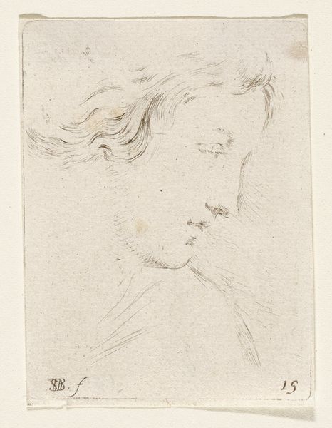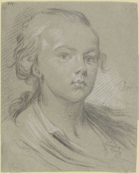 Editor: We're looking at Thomas Worlidge's sketch, "A Young Man, Head and Shoulders, Half Right." I’m struck by the softness of the lines, almost dreamlike. What whispers to you when you see this drawing? Curator: Oh, he’s caught in a reverie, isn’t he? Perhaps dreaming of sonnets or scandalous affairs. The sketch feels like a fleeting thought, quickly captured before it vanishes. The delicate hatching gives him a certain…vulnerability. A wisp of graphite on paper, echoing the ephemeral nature of youth itself. Editor: That’s lovely. I hadn't considered that. Curator: Art is an echo chamber, my dear. What you bring to it bounces back, changed. Now, tell me, what will you dream of tonight?