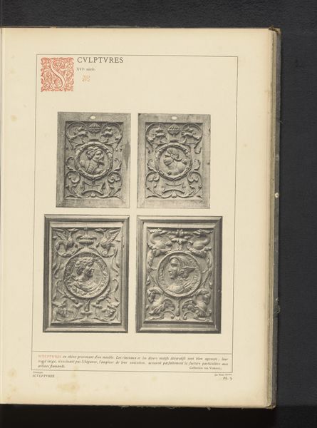 Curator: My goodness, this is quite something! These images depict three oak wood sculptures adorned with family crests. They once graced the Oudenaarde Town Hall in Belgium. Can you believe this detail? Each one is like a little world carved in wood. Editor: Immediately, I notice a tension between the personal and the political. The family crests, of course, speak to lineage and power. I'm intrigued by how this private symbolism functions within the very public space of a town hall. How did these heraldic symbols serve to either unite or perhaps even divide the community? Curator: That’s a delicious point! Visually, there's a density that's incredibly inviting. All those tiny, meticulously carved details draw you in, promising stories behind each line and curve. Each relief is really busy, you can feel a symphony. I almost expect a choir to break out of the wall when viewing. Editor: Exactly. The sheer density underscores the social and economic clout these families possessed. We have to remember that heraldry wasn’t just decorative; it was a visual assertion of status. Think about the access and privilege implied in even being able to commission a piece like this. What did this say about citizenship, or even humanity, for the common person during this time? Curator: Well, you also get this sense of continuity, don't you? Wood has this ancient quality, the carving feels connected to the earth. Before 1887, and rooted into civic space in Belgium… it lends weight and perhaps a touch of intimidation. There’s a very specific kind of… grandeur here. Almost theatrical. Editor: And it's a grandeur deeply embedded in systems of inequity, right? When you look at these images, remember that these families often benefited from – and actively perpetuated – hierarchies. Curator: Always that balancing act! History's not always pretty, even if it births pretty art. So where does that leave us then? Is the dialogue between then and now where we are left? Editor: Precisely. These carvings are compelling entry points into vital discussions. Examining these art objects as cultural texts reminds us to ask difficult questions about power, representation, and collective memory. Curator: Beautifully put.
