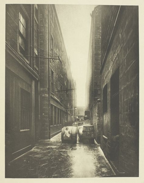 James Craig Annan made this photogravure, "Back Wynd from Trongate," using a copper plate etched with a photographic image, then inked and printed onto paper. Annan was a key figure in the Pictorialist movement, which aimed to establish photography as a fine art. This image is a wonderful example of that ambition. Notice how the photogravure process, with its soft tonal range, lends the scene an atmospheric quality. The rough texture of the buildings and the cobblestone street are palpable, and the eye is drawn down the narrow alleyway by the play of light and shadow. But beyond its aesthetic appeal, the image also speaks to the realities of urban life. The back wynd, or alley, was a place of labor and commerce, but also of poverty and neglect. In Annan's hands, it becomes a subject worthy of artistic attention, blurring the lines between documentary and fine art, and raising questions about the social and economic forces that shape our built environment. This is a work in which materiality, making, and social context intertwine, and challenges our understanding of the world around us.