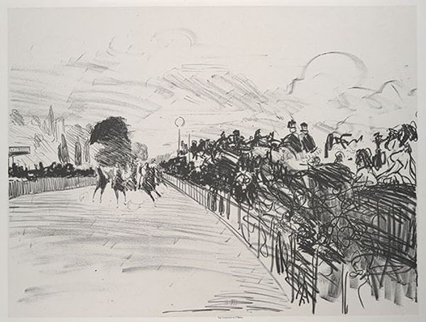 Edouard Manet made this sketch called "The Races" with graphite on paper. It captures a horse race, a spectacle laden with symbols of power, speed, and chance. Observe how Manet renders the horses as a blur, a mass of energy hurtling forward, and how the crowd is captured from a viewpoint from up high as if it were a single organism driven by anticipation. This scene evokes ancient Roman chariot races, where victory was not just a sporting event but a reflection of imperial glory and fate. The raw energy of the race, the intense focus of the crowd, remind us of the primal human fascination with competition and destiny. Like the ecstatic frenzy of a bacchanal, Manet's sketch captures the timeless pursuit of victory and the fleeting moment of triumph. A powerful experience that engages us on a subconscious level.