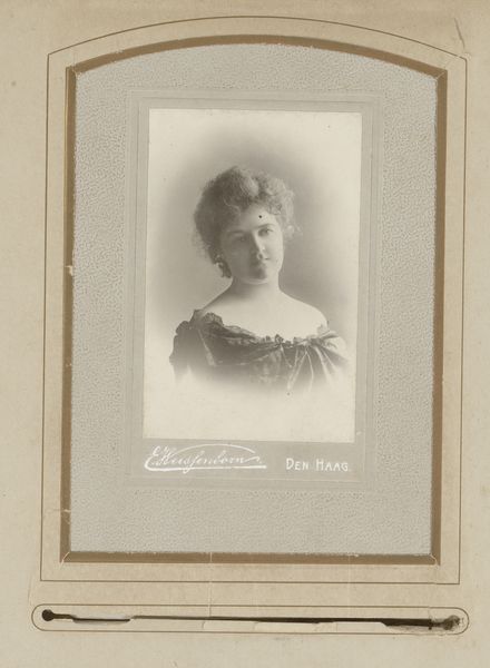 Alice Hughes made this photograph of Maud, Duchess of Norway, in 1899. The portrait, with its subdued tones, captures the Duchess in a formal yet intimate setting. Hughes’ composition invites us to consider the interplay between light and shadow, highlighting the textures of fabric and the delicate features of the subject. The strategic arrangement of the Duchess, positioned slightly off-center, brings a dynamic tension to the photograph. The verticality of her figure is softened by the gentle curves of her dress and bouquet. This creates a balance that is both visually pleasing and structurally sound. Hughes masterfully employs the semiotic system of portraiture. The elements like dress, flowers and the Duchess's gaze collectively signify nobility, femininity, and grace. It's not just a depiction; it's a construction of identity through carefully chosen visual cues. Ultimately, the strength of this photograph lies in its formal qualities. The way Hughes orchestrates light, composition, and texture to create a compelling image that speaks to broader cultural ideas about representation and identity.