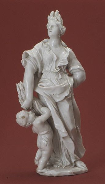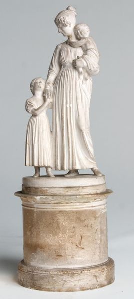 Editor: This lovely marble sculpture, titled "A Little Girl Holding Kittens" by J.A. Jerichau, was crafted in 1886. She looks so gentle and content, almost reverent in her cradling of those tiny creatures. How would you interpret this work? Curator: Ah, yes, a touching scene rendered in cool, smooth marble. For me, it whispers of fleeting innocence, that tender moment before childhood completely dissolves into the harsh light of adulthood. Notice how the cat leans trustingly against the girl's leg; she is the protector here. It makes me wonder, is this merely a charming genre scene or something deeper? Could the kittens represent vulnerability itself, something we all cradle close and try to safeguard? And that slight downward tilt of her head, what do you make of that? Editor: I see what you mean, that tender watchfulness. It's like she's taking on the weight of responsibility. But what about the realistic style? Does that contrast with the symbolic interpretation? Curator: Not at all! Realism doesn't negate symbolism; it amplifies it. Jerichau invites us into a seemingly everyday scene, making the underlying emotions even more palpable, don't you think? It's as if he's saying, “Look closely, because even in the simplest moments, the most profound truths reside." Now, imagine, if you will, those kittens not as kittens at all but as nascent hopes... how does the sculpture speak to you differently then? Editor: Wow, I didn't think about that! That perspective definitely deepens my appreciation. Thank you! Curator: The beauty of art, isn't it? It's never just what you see but what it makes you feel, what stories it coaxes out of your own soul. A conversation between marble and ourselves.