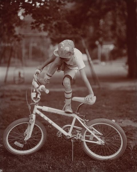 This is Robert Frank’s, Self-Portrait, a black and white photograph. Look at the strong contrast, almost harsh, like a sunny day. It’s got that feeling of immediate, process-driven mark making you find in photography - click, you've made your mark! I love how Frank includes himself as a shadow, holding a camera. It’s him, but not him, a stand-in. The bike, the rack, the wall - they all seem very solid, real, while the shadow is ephemeral and fleeting. He’s saying something about being present in a place, but only partially. It’s as if he is both there and not there, observer and participant, solid and shadow. Frank’s work reminds me of Helen Levitt, another street photographer. But where Levitt captured the spontaneity of children, Frank’s work is more serious and speaks to something about the nature of self-expression. Can you ever really capture yourself? Or is it always a shadow, a trace?