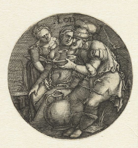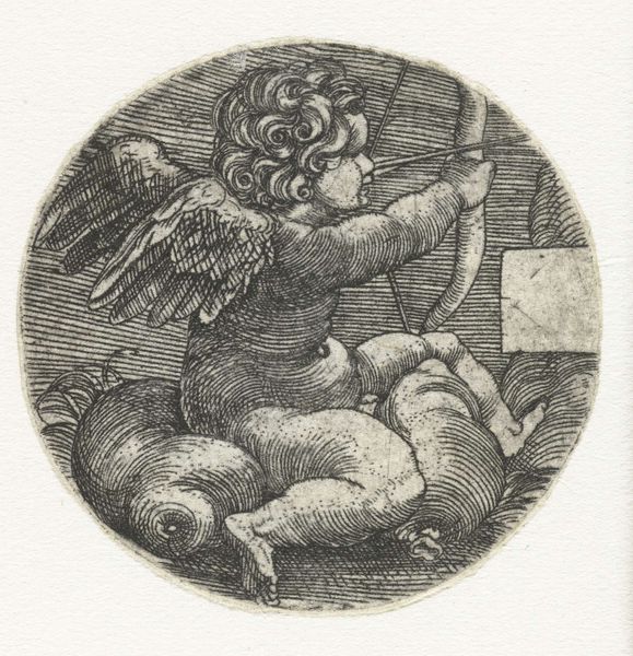 Sebald Beham created "Seven Naked Boys" in the 16th century during the German Renaissance. This small, circular engraving presents a cluster of nude children, their expressions ranging from solemn to almost confrontational. Beham was one of the "Little Masters," a group of German printmakers known for their small-scale, intricate works. He lived during a time of significant religious and social upheaval marked by the Protestant Reformation, which influenced artistic themes and styles. Beham himself was briefly exiled for his radical beliefs. In "Seven Naked Boys," we see a tension between the classical ideal of the nude figure and a more individualized, less idealized representation of childhood. The children's poses and expressions suggest a loss of innocence. The work can be considered in the context of shifting attitudes toward childhood and the body during the Renaissance. These children are not simply cherubic figures but individuals, caught between innocence and awareness, reflecting a society in transition.