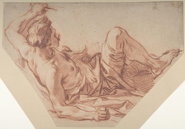 Cornelis van Noorde created this drawing, "Zittende naakte man met fluit", with pen in the late 18th century. During the 1700s, there was a growing interest in representing the human body within artistic and intellectual circles. It was a time where ideas about identity were explored in connection with classical ideals. Notice how van Noorde portrays the sitter: he's nude and casually seated. This intimate depiction invites us to consider the relationship between vulnerability and self-expression. The flute, often associated with pastoral scenes, introduces themes of leisure, artistry, and perhaps even a yearning for a simpler life. What does it mean to depict the male body in repose, engaged in an artistic act? This work offers us a glimpse into the complex interplay between classical ideals, individual identity, and the social expectations of the 18th century. It encourages us to reflect on the multifaceted nature of human existence, and the ways in which art allows us to explore these complexities.