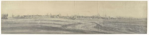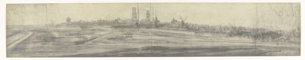 Frères Moreau created this panoramic view of Elburg in 1672, during a period of significant political and social upheaval in the Netherlands. This was the year of the Franco-Dutch war in which the Dutch Republic was invaded by France, England, and other nations. The drawing captures Elburg, a Dutch Hanseatic city, as a site of both security and vulnerability. The city is depicted from a distance, its fortifications and windmills dotting the horizon, but rendered with a soft, almost dreamlike quality. This approach invites us to reflect on the layered identities of the urban space. Is the city an emblem of power, a testament to human engineering and resilience? Or does the faintness of the image suggest a more fragile, temporal existence, subject to the whims of war and time? Consider too, the role of the artist. What does it mean to document a city on the brink? Is this an act of preservation, a hopeful gesture towards the future, or a somber acknowledgement of potential loss? This drawing resonates as an exploration of collective identity and the ever-shifting relationship between people, place, and history.