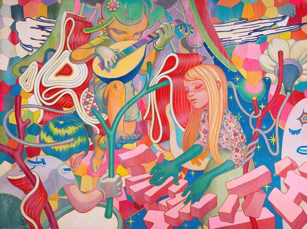 Charles Clough made this collage painting, '#5', and it’s like a riot of color and form, a real free-for-all. It’s not trying to be polite, which I love. There's a physicality to it, a real tactile quality. The paint looks thick in places, like it's been slathered on, and then thin and transparent in others, creating a push-pull effect. It's hard to tell exactly what tools he used. It's like he was wrestling with the paint, letting it do its thing, and then stepping in to guide it. Check out the right side of the piece: there are dark, heavy strokes of black and blue that seem to cascade down the surface, almost like a waterfall. It feels chaotic, but there’s a strange order to it, too. Clough reminds me a bit of Francis Picabia. Both were interested in questioning the conventions of painting. This piece shows us that art is a conversation, a back-and-forth between artists across time.