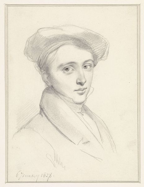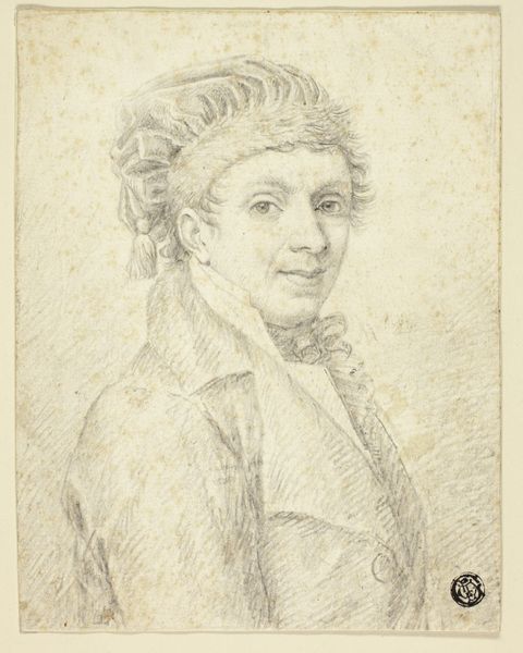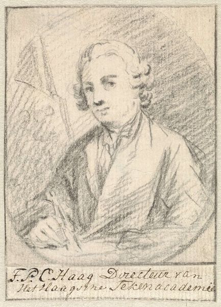 Editor: Here we have "Portrait of a Woman" by Pieter Tanjé, likely made sometime between 1716 and 1761. It's a pencil drawing and the delicate lines give it such a gentle, almost melancholic feel. What do you see in this piece, particularly in its historical context? Curator: What I immediately notice is the idealization typical of the Rococo period mingling with a nascent realism. It's a dance between what was expected of portraiture—a presentation of status and beauty—and a genuine attempt to capture the individual. Her gaze, for instance, is direct but also slightly detached. What stories do you think her eyes tell? Editor: That's interesting! I hadn’t considered the potential realism fighting against the idealization. I see a hint of weariness, maybe even a quiet defiance. Could her gaze be interpreted as a subtle form of agency in a society that largely confined women? Curator: Precisely! Think of the symbols and implied narratives in how women were presented during this era. The controlled curls, the soft, diffused lighting… these are elements meant to convey refinement and virtue. But within that framework, Tanjé seems to allow for a glimpse of something more complex, a consciousness that transcends mere decoration. Does the use of pencil as opposed to paint impact your perception of the work? Editor: I think the pencil emphasizes the immediacy and intimacy, as though the artist is giving us a direct, unfiltered view. It’s like a fleeting moment captured on paper. I learned so much about how portraits encode so much information about a person. Curator: And how a culture chooses to remember them. These images are vessels of memory, continually reshaped by the present.