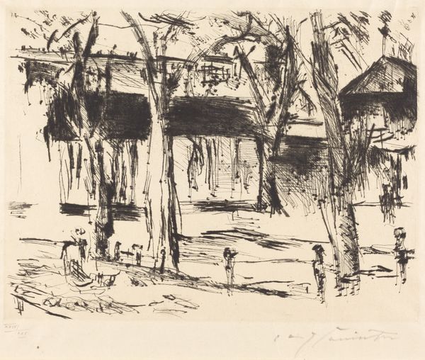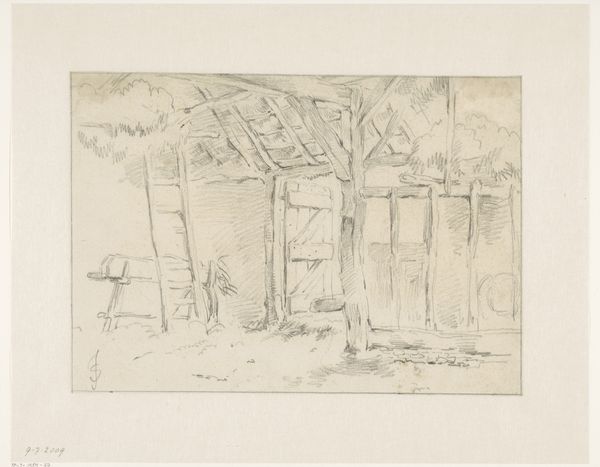 Jozef Israëls made this drawing of a farmyard scene with pencil on paper. Israëls was a Dutch painter known for his sympathetic depictions of working-class life. This sketch offers insight into the artistic culture of the Netherlands in the 19th century. The Hague School, to which Israëls belonged, emphasized realism, rural subjects, and a muted palette to capture the atmosphere of the Dutch landscape and the lives of its inhabitants. Here, the rough lines and candid composition suggest a desire to represent the unvarnished reality of rural life. The figures are rendered without idealization, their forms blending into the surroundings. To understand Israëls' work fully, one would need to examine the artistic institutions of the time, the market for art, and the social conditions that shaped his subjects' lives. By consulting historical documents, such as exhibition reviews, artists' letters, and social surveys, we can better understand the complex interplay between art and society.