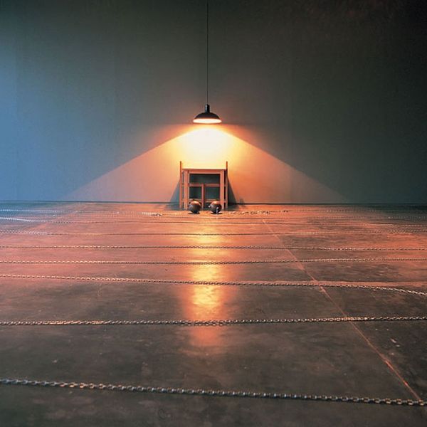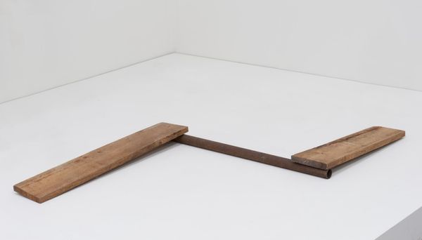Jimmie Durham put together this piece, Gilgamesh, from wood and metal. There is something immediate about the way Durham brings these materials together. They have a feeling of just being found and directly combined, like a three-dimensional collage, or a funky assemblage. Look at the wood, its grain feels very present, not obscured by any surface treatment. The metal elements, like the cylinder or the rods attached to the top of the wooden plank, also speak to the basic properties of the material, without being excessively refined. You can imagine the artist working intuitively and in direct response to the physical character of the materials at hand. Durham's interest in the elemental aligns him with artists like Joseph Beuys, who also explored the intrinsic and metaphorical qualities of organic materials. But unlike Beuys, Durham embraces a certain lightness and sense of humor. Ultimately, the meaning remains open, inviting the viewer to engage in an act of collaborative meaning-making.