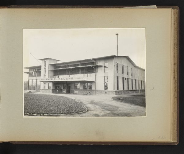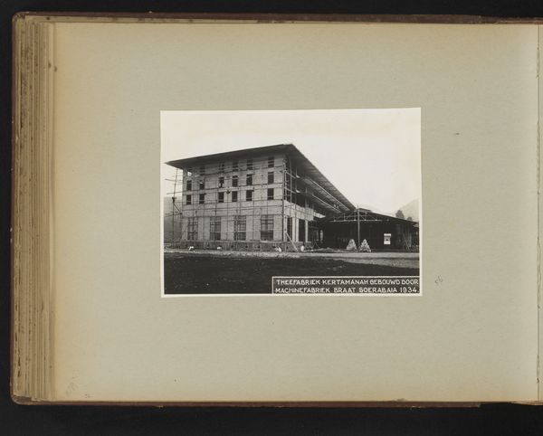 This photograph of Theefabriek Kertamanah, a tea factory in Soerabaia, was taken by an anonymous artist in 1934. What strikes me about this image is its stillness; it's so quiet, you can almost hear the silence. The photo is mounted in a larger book or album with thick, creamy pages. Look closely and you can see the texture of the paper, the way the image sits just slightly raised on the page. This interplay between the flat photographic image and the dimensional quality of the album page creates depth and activates the surrounding space. The factory itself, with its linear architecture, is captured in a way that emphasizes its geometric form. The anonymous photographer has captured a moment of quiet grandeur, transforming the factory into a monumental form. It reminds me of some of the Bechers' typologies, yet the personal touch of the album gives it an intimacy that sets it apart. Art is a conversation, and this image speaks to us across time.