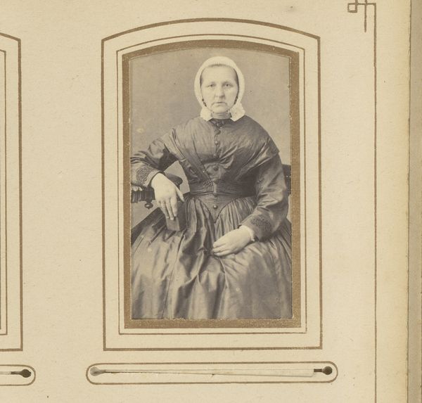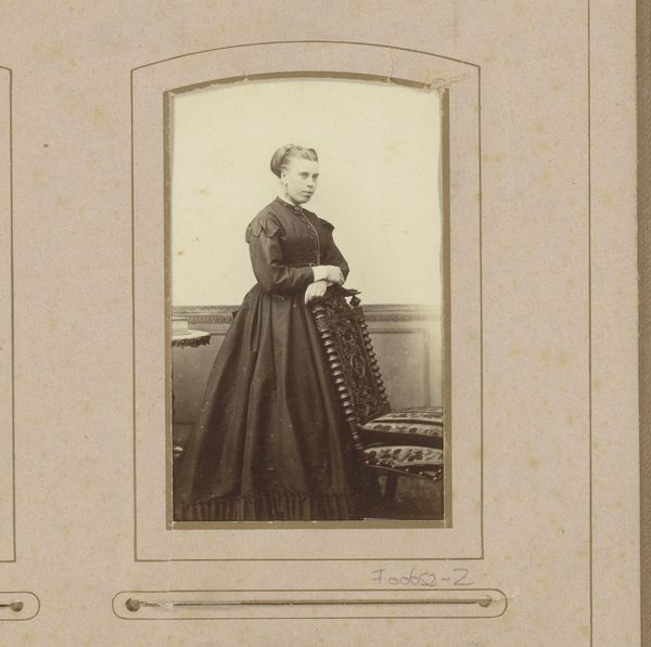 Louis Robert Werner made this photograph of an unknown standing woman. The photograph offers a glimpse into the visual culture of the 19th century. Consider the act of portraiture at this time; it was a statement of identity and social standing. The woman's modest dress, with its high neckline and simple embellishments, speaks to the values of the era. This was a time when women were often confined to the domestic sphere, and their identities were closely tied to notions of piety and domesticity. The photograph's small size suggests its function as a personal keepsake, an object of memory and connection. Its presence in the Rijksmuseum invites us to consider the ways in which individual lives intersect with broader historical narratives. It's a reminder that the past is not just a collection of grand events, but also a mosaic of personal experiences.