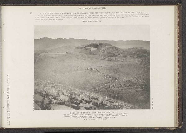Editor: So, this is “Gezicht op Delphi vanuit het zuiden” – “View of Delphi from the South” – taken by the English Photo Co. sometime before 1905. It’s a printed photograph and strikes me as quite stark, almost brutal, in its depiction of the landscape. What do you see in this piece? Curator: I see a conscious attempt to negotiate the emerging industrial photographic process with artistic ambition. The ‘English Photo Co.’ probably signifies factory-like output, but note how the tones, seemingly grey, have been modulated across the entire print in order to generate particular effects, not dissimilar from drawing and etching. The *craft* in mass production. Editor: That’s fascinating! So you’re suggesting they were trying to elevate what was essentially a commercial product into something more artistic through manipulation of the medium? Curator: Precisely! Pictorialism, as a style, positioned itself deliberately against straightforward mechanical reproduction. The final image owes less to the supposed truthfulness of photography and more to a certain atmospheric quality akin to Romantic painting. Consider also how the "scene" of Delphi--a place thick with cultural capital as the site of pilgrimage and the origin of philosophy--lends the photograph a veneer of legitimacy. How might we read this today as a prefiguration of art's expanded reproduction into postcards, or prints destined for decor? Editor: I see what you mean. It’s not just a record; it’s an *interpretation*, a construction, carefully produced and, ultimately, meant for distribution and consumption. What strikes me is the way even industrial processes can be imbued with artistry, which maybe blurs our categories. Curator: Indeed. Thinking about art as primarily a process, rather than simply a product, encourages us to consider the means of its making and circulation, not just its aesthetic qualities. What did *mass* art mean for the art world?