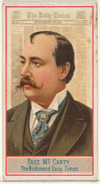 This portrait of the President of Switzerland is from a series of cigarette cards produced by Allen & Ginter, a Richmond, Virginia tobacco company. The series, titled "World's Sovereigns," presents leaders from around the globe, idealizing power and authority. It reflects the burgeoning commercial culture of the late 19th century, where even heads of state could be packaged and sold. Consider how the gaze of the sitter projects an aura of stability and command. The monocle, a symbol of status, hints at an upper-class identity. These cards were essentially advertisements, and they also functioned as cultural artifacts, embodying societal values and assumptions. They highlight the relationship between consumerism and the construction of identity. Today, we might reflect on what it means to commodify leadership and how advertising shapes our perceptions of power.