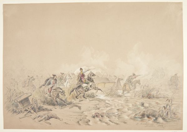 Victor Müller created this watercolor, “A Group of Musicians Traveling Through a Landscape,” sometime in the mid-19th century. Müller came of age in a period of significant political and social upheaval in Europe, including the rise of nationalism and revolutions of 1848. The artwork portrays a group of musicians journeying through a rural landscape, perhaps evoking the lives of wandering minstrels of earlier times, but it also reflects Müller’s interest in the Romantic movement, which was fascinated by the past and folk traditions. The musicians, with their varied instruments and attire, seem to represent a cross-section of society. They could be read as symbols of unity and cultural identity, particularly relevant in an era marked by the consolidation of nations. The soft, muted tones and the somewhat dreamlike quality of the landscape invite us to consider themes of nostalgia, longing, and the search for cultural roots. "Art is not there to tell stories, but to trigger emotions", Müller once said. As you reflect on this artwork, consider how it speaks to our own sense of identity and belonging, especially in an age of globalization and rapid change.