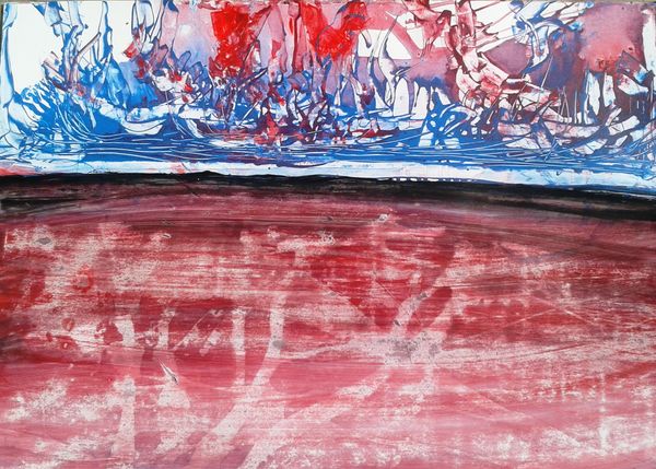 Editor: This is "Creation" by Ed Clark, from 2006, created with acrylic paint. It's mostly blocks of blended colors... it feels elemental to me, like earth, water, and sky mashed together. What's your take? Curator: I see a work that's fundamentally engaged with the materiality of paint itself. The canvas isn’t just a surface, but a terrain where the artist confronts and manipulates matter. Look at the thickness, the visible brushstrokes; Clark foregrounds the labor of creation. Considering its date, how does it relate to the Abstract Expressionist movement it seems rooted in? Editor: Well, Abstract Expressionism often downplays representation, right? Focusing more on gesture and the act of painting… which this definitely seems to do. Does this act change or reinforce the art and craft binary? Curator: Exactly. Clark is consciously dismantling hierarchies. Traditionally, "high art" involved masking the artist's hand, but here, the *making* is the message. The visible process collapses the distance between artist, material, and viewer. Think about what it means to present the making of art so explicitly. What commentary could this have been making about production in that time? Editor: Maybe about valuing process over a polished final product? Curator: Precisely. And beyond that, reflecting on how art objects themselves become commodities. By emphasizing the labor, is Clark offering a subtle critique of art's role in consumer culture? Editor: That's really interesting. I hadn't considered that angle before. Seeing the visible process as a form of commentary… Curator: It makes us think about what constitutes 'value' in art and in broader society. I appreciate Clark is urging us to consider the hands that make art and their labor. Editor: Thanks! I learned so much about thinking about process over representation.