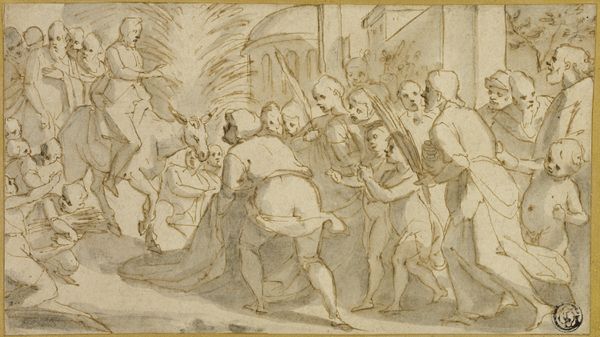 Tommaso Redi created this drawing, "Baptism of Christ," sometime between the late 17th and early 18th centuries. Redi, who lived in Florence, Italy, during the late Baroque era, captures a pivotal moment in Christian theology. The drawing depicts John the Baptist as he baptizes Jesus, while a crowd gathers to witness the event. The Holy Spirit, in the form of a dove, descends from the heavens. Redi’s composition employs a dynamic arrangement, with figures actively engaged in the scene, all rendered in delicate pen strokes. During the Baroque period, artists navigated constraints from the Catholic Church, often balancing traditional religious narratives with more expressive and dramatic interpretations. Consider how Redi’s approach to portraying the human body embodies the era’s evolving artistic norms. As you reflect on this drawing, ponder the emotional weight carried by the figures, and the enduring legacy of the narratives depicted.
