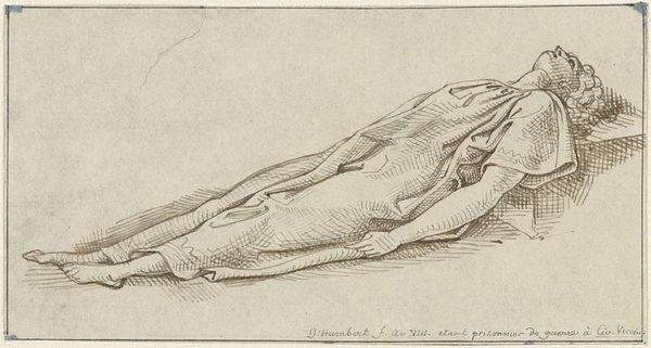 This small drawing of a human lower leg with a bone fracture was made by Isaac Weissenbruch. The almost monochromatic use of ink emphasizes form and structure over color. The leg, depicted in profile, commands the composition, its shape meticulously outlined with fine, precise lines. Weissenbruch’s approach here is reminiscent of academic anatomical studies, yet the starkness of the representation—the exposed fracture—introduces a tension between scientific observation and the body's vulnerability. Note how the dashed lines create an outline of the leg, focusing our attention on the contours of the limb. Weissenbruch destabilizes the conventional depiction of the human form by revealing its internal structure, in turn prompting us to consider the relationship between exterior and interior. The drawing, therefore, exists not just as an anatomical study but as a meditation on mortality and the fragility of existence.