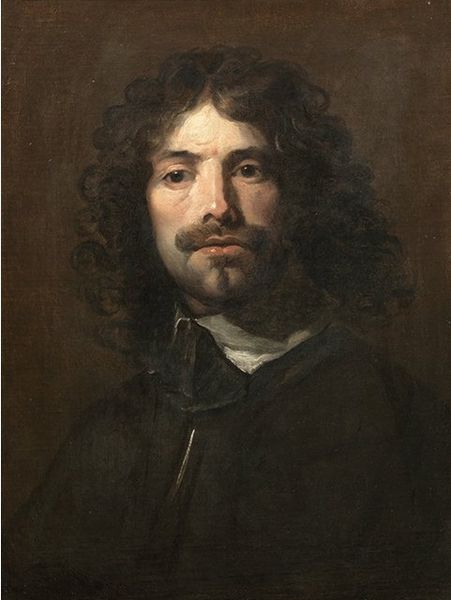 Editor: This is *Portrait of Michel Le Blon*, rendered in oils, and attributed to Anthony van Dyck, dating from after 1700, here at the Rijksmuseum. I am struck by the man's gaze and confident air but what specifically stands out to you in terms of its construction? Curator: Note first how the composition directs our attention to the face. The stark contrast between the white lace collar and the dark fabric of the sitter's coat sharply frames his face. The dark background furthers this framing. Editor: So, you’re suggesting that van Dyck’s considered placement of light and dark directs our reading? Curator: Precisely. It’s also worth looking at the interplay between line and mass here. Van Dyck captures the materiality of flesh. Notice, also, the looseness of the brushstrokes— particularly in the sitter’s hair against the relatively smoother texture of the face. Do you find the contrasting techniques to be disruptive, or rather enriching? Editor: I think the slightly softer focus actually enhances the sense of depth and makes him look less flat, and adds to the realistic effect. I've learned how strategic manipulation of light and technique gives van Dyck an edge. Thanks for the lesson. Curator: Indeed. It is through just such close observation and attention to formal qualities that we come to a greater understanding of an artist's technique and intentions.