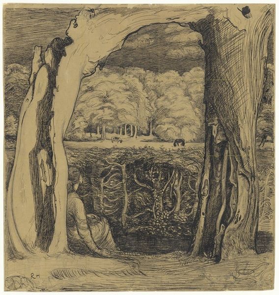 Editor: So here we have Marc Chagall’s etching, "The Earthen Pot and the Iron Pot," made sometime between 1927 and 1930. It’s a very busy composition, with lots of rural imagery. But somehow, it feels more like a memory than a depiction of real life. What do you see in this piece, Professor? Curator: Ah, Chagall. He stirs my soul. Look closely – do you see how the textures are built? That's no mere description of a farm. He’s inviting us into his mind. It's about memory, yes, but more than that, it's the feeling of being in that memory, fragmented and reassembled. The objects, like the pots themselves, aren't just still life elements. They are stand-ins. For people, maybe? Relationships? Think of an earthen pot – fragile, humble. Now imagine an iron pot. Heavy, resilient, maybe even a little…imposing? What does that contrast evoke for you? Editor: That makes me think of class differences, or maybe even tensions between tradition and modernity. The rustic scene clashing with more industrial objects… Is that what he intended? Curator: Intention is a funny thing with Chagall. He's not writing a thesis, he’s singing a song. But your interpretation resonates! Consider his background – rooted in a Hasidic community in Belarus, later thrust into the art world of Paris. That push and pull informs everything he creates. It makes me wonder… Do you feel that same tension in your life? The grounding of the past versus the pull of the future? Editor: Definitely! It gives a whole new layer to the picture. It’s not just pretty chickens and pots anymore. Curator: Exactly! Art isn't about answers; it’s about the questions it unlocks within us. Editor: Well, I'll definitely be looking at Chagall differently from now on. It’s funny how a couple of pots can contain so much!