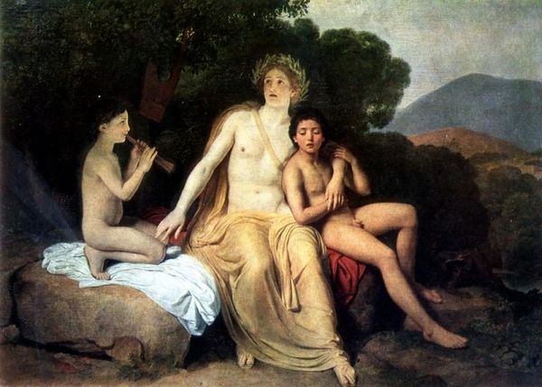 Francesco Hayez's painting "Lot and His Daughters" presents us with a classical tableau vivant centered on human forms. The figures, arranged in a pyramidal composition, dominate the canvas with their sculptural presence. This structure organizes the narrative elements within a balanced framework. The palette of warm tones and the rendering of drapery nod to classical traditions. Light and shadow play across the figures, highlighting their volumes and adding a sense of drama. This carefully modulated chiaroscuro enhances the emotional intensity of the scene, drawing the viewer's eye to the subtle gestures and expressions of the characters. We see how the artist masterfully controls the composition and lighting to focus on the psychological states of the figures. The formal elements are meticulously arranged to convey both the aesthetic and the moral dimensions of the narrative. The artwork invites us to explore the interplay between classical form and human drama. The themes remain open to ongoing interpretation, reflecting the complex relationship between art, morality, and cultural values.