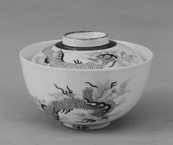 Editor: Standing before this "Bowl (part of a service)" made between 1765 and 1775 by the Frankenthal Porcelain Manufactory, I’m struck by how the delicate porcelain and monochrome design contrasts with the rather dynamic depiction of the birds. What can you tell me about it? Curator: Let's consider the materials. Porcelain, during this period, wasn't just a substance; it signified status and global trade networks. Frankenthal, like other European manufacturers, was trying to replicate the highly-prized Chinese porcelain. How does the act of imitating a material tradition influence the value of this object? Editor: So, the bowl is more than just a functional object; it's a statement about aspiration and cultural exchange? Curator: Precisely! And the labor involved in creating it is crucial. From the mining of kaolin to the meticulous painting of the bird scene, this bowl represents a complex chain of production and human effort. Are the birds painted directly onto the ceramic or is there a transfer? Does the mechanization alter the art-making process? Editor: Good point, it's amazing to consider that the entire process depended on skilled laborers with their particular skill sets, like painters and handlers. Also, given the social context of Rococo decorative art, was such porcelain mostly for display and for the table use of the elite? Curator: Absolutely! The Rococo style itself speaks to the aristocratic tastes and consumerism of the time. Objects like this bowl weren't merely functional; they were designed to be admired, collected, and displayed as emblems of wealth and refinement. Now, consider how such display influences artistic labor within factories. Editor: So, looking at it from this perspective, I appreciate how it encompasses trade, labor, and societal values beyond its elegant form. It makes you appreciate the actual labour! Curator: Exactly. It reminds us that objects are rarely just beautiful; they’re also embodiments of social and economic relations.