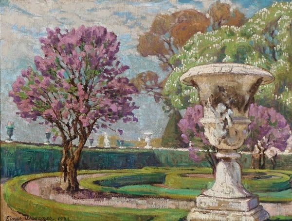 Theo van Rysselberghe painted this impressionistic rendering of a garden with villa and fountain, most likely in the early 20th century. It is hard to miss the imagery of leisure and affluence on display. The manicured lawns, grand villa, and elaborate fountain speak to the tastes of the European upper classes in the decades before the First World War. Van Rysselberghe was a Belgian artist who traveled widely and often painted landscapes and scenes of modern life. He was a founding member of Les XX, a group of avant-garde artists that challenged the conservative academic institutions of the Belgian art world. This painting, however, is not overtly challenging. Instead, it offers a glimpse into the private world of the wealthy. Art historians often turn to sources like letters, diaries, and social histories to understand the context in which paintings like this were made. The challenge for us is to consider both the radical artistic ideas and the conservative social attitudes that shaped the art of this period.