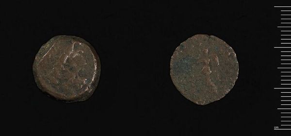 Editor: This is a Diobol of Alexandria, made under Antoninus Pius, currently held at the Harvard Art Museums. It's a rather small coin, quite worn with age. What symbolic meaning might be embedded in such a commonplace object? Curator: Coins, especially ancient ones, function as powerful symbols of authority and cultural identity. Consider how the imagery, likely chosen by the emperor, would circulate and reinforce his power. Editor: So, the images are essentially propaganda? Curator: Precisely! In antiquity, visual symbols served as potent tools for disseminating cultural values and imperial narratives. This coin isn’t just currency; it's a cultural artifact, a vessel carrying encoded messages across time. Editor: That's fascinating; it really makes you think about the multiple layers of meaning in even the smallest objects. Curator: Indeed, and by studying those layers, we gain insights into the cultural memory and intended message of a specific era.