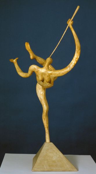 Alexander Calder made this sculpture, The Fawn, from plaster over metal. The finish is rough and textured, like tree bark, which sets it apart from Calder’s better-known mobiles and wire sculptures. It’s a kind of hybrid, this fawn. Its body is solid, almost heavy, with a flattened, teardrop shape. The surface looks built up, maybe applied in layers, which makes me think of process, of Calder building this thing bit by bit. Then the legs, like spindly branches, are so delicate. And that head, or tail, reaching up with its open curves, is so playful, so airy. Calder almost draws in space with this sculpture, giving us solid volume and open line in the same breath. I guess you could say that Picasso’s wire sculptures do something similar, but with a totally different sensibility. Whereas Picasso is angular and cerebral, Calder is all about gesture, movement, and humor. He invites us to see the world with a sense of lightness and joy.