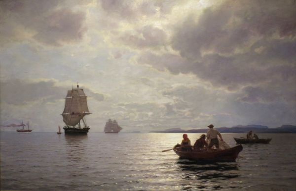 Hans Gude painted this view of Sailing into the Oslo Fiord in the mid-19th century. Here we see an intriguing expression of Norwegian national identity just as it was emerging as an independent nation-state. In this period, artists turned to landscape painting as a way to represent and define the essence of their homeland. As a history painter, Gude would have been aware of the power of imagery. The Norwegian landscape, with its fjords and dramatic coastlines, became a potent symbol of national pride. The boats here signify human presence and the connection between the Norwegian people and their environment. The expansive sky and tranquil water suggest a sense of peace and harmony, which may have also been aspirational. To better understand paintings such as this, historians explore archives and collections, gaining insight into the role that institutions played in shaping artistic production, especially in newly formed nations. The meaning of a work is always deeply rooted in the social and institutional context in which it was created.
