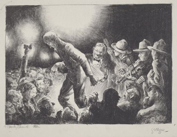 Hans Alexander Mueller created "The Collectors," a wood engraving, around 1940, a tumultuous time marked by World War II and widespread social upheaval. As a Jewish artist who fled Germany during the rise of Nazism, Mueller's work often carries a profound sense of social critique. "The Collectors" depicts a group of men, seemingly engrossed in examining rare books or documents, in a manner that borders on grotesque. Their intense focus and somewhat caricatured features evoke a sense of greed and obsession. This scene might reflect on the ways in which cultural artifacts can become commodities, accessible only to a privileged elite. The choice of wood engraving—a medium that demands precision and labor—adds another layer to the work. Consider how the contrast between light and shadow shapes the narrative, drawing viewers to question the values and motives driving these figures. The artwork prompts us to reflect on the relationship between art, commerce, and social class. How do we ensure that cultural treasures remain accessible and meaningful to all, rather than becoming symbols of status and wealth?