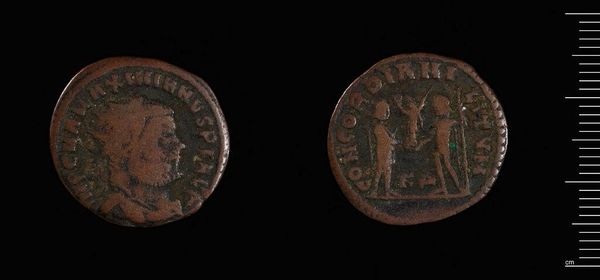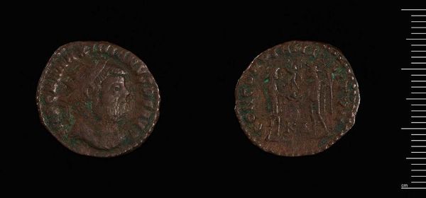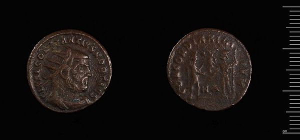 Editor: Here we have the Antoninianus of Diocletian, and it looks to be made of metal. It's a coin with a regal portrait, but it seems worn from circulation. How does the context of its use shape our understanding of its imagery? Curator: Well, coins like this were less about art for art's sake and more about projecting power. Diocletian reformed the Roman monetary system, and his image on coinage would have been a constant reminder of his authority, circulating amongst the populace. Editor: So, it's propaganda in your pocket? Curator: Precisely! And consider where these were minted, who controlled those mints, and how the imagery might have been tweaked for local consumption. The public role of art, even on a small scale, is always tied to power structures. Editor: That's something to think about. Seeing it as a tool of governance changes everything. Curator: Indeed. It makes you wonder how different rulers would use similar forms today to project influence.