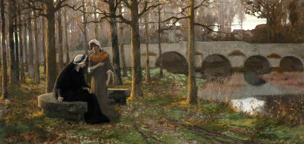 Vincent van Gogh’s "Two Women in the Woods" captures a quiet moment with thick brushstrokes of earth tones and greens. The composition pulls you into the forest, following the path toward the barely visible second figure. The painting, with its crude and vigorous facture, challenges the academic conventions of portraying nature. Van Gogh's use of impasto creates a tactile surface, disrupting traditional smooth finishes to emphasize the materiality of paint itself. This aligns with late 19th-century Symbolist ideas of the artist's subjective expression and the abandonment of mere replication of reality. Here, Van Gogh explores a deeper emotional truth embedded in the landscape. The dark tonality and enveloping trees might be read as a metaphor for life's journey, its uncertainties, and the solace found in nature. It is in these expressive qualities—the brushwork and subjective color—where Van Gogh's true innovations lie, marking his break from realism.