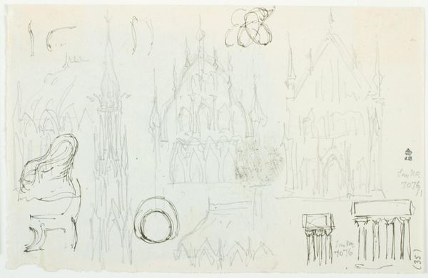 Henri Cameré created this pencil drawing entitled 'Designs for table pieces, candlesticks and jardinières'. These sketches illustrate the cultural significance of decorative arts in the 18th and 19th centuries, particularly within elite social circles. During this period, elaborate table settings and ornamental objects were potent symbols of wealth and status. These sketches of candelabras and jardinières reflect the institutional and social forces that shaped artistic production. The design of these objects, often incorporating classical motifs and intricate details, speaks to the prevailing aesthetic tastes of the time. By studying sketches like these in conjunction with period documents, letters, and auction catalogs, we can better understand the cultural values and social structures that informed artistic creation. Approaching art history in this way highlights the vital role of historical context in interpreting works of art.