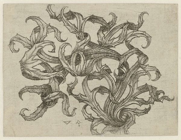 Curator: Here we have a fascinating panel by Nicasius Rousseel, titled "Paneel met bladranken die uitlopen in een vrouwelijk torso," created around 1684. Editor: Oh, my! At first glance, it's a whirlwind of elaborate foliage, twisting and turning, and then…is that a woman emerging from it all? It’s whimsical, like a dream you can't quite grasp. Curator: Indeed! Rousseel employed pen and ink with extraordinary precision, achieving an intricate and lively composition. It feels like a meditation on natural form transforming into figurative art. Think of it in relation to contemporary uses for sketchbooks and decorative prints, intended to inspire other works of art or stand on its own. Editor: When I zoom in on my device, the execution is unbelievable. Considering this was completed by hand using quill and ink, I immediately appreciate the patience and dedication that went into this work. What might it have been used for, beyond visual delight? Curator: These kinds of drawings were often incorporated into architectural or design elements. Think carved wood panelling, for example, or even influencing textile designs. You see these flourishes on objects all over Amsterdam's surviving buildings. The drawing acts as a conduit, linking the natural world with human craftsmanship. I wonder if that feminine figure represents some kind of spirit of nature, a kind of Mother Earth figure within this constructed scene. Editor: A female figure seamlessly transitions into elaborate scrolling leaves…it almost critiques society's tendency to constrain the natural and feminine in general through labour. Everything is purposefully ornamented. Do you see some elements that look bestial? It almost hints at Ovid's Metamorphoses with humans taking forms to live out their lives more authentically, whatever the cause! Curator: Ah, yes, I see what you mean! Perhaps it expresses some anxieties about society, culture, and life in this period! You know, seeing all those decorative patterns—I would like a throw pillow like that! I find it fascinating. The eye wanders continuously, discovering something new at every turn. Editor: Absolutely. You know, examining Rousseel’s linework prompts me to think about the artist, the labor they put in…and more than that, also prompts me to look outside into what craftspeople can and can produce, with all the issues they must surmount. That labor is something we need to cherish as well.