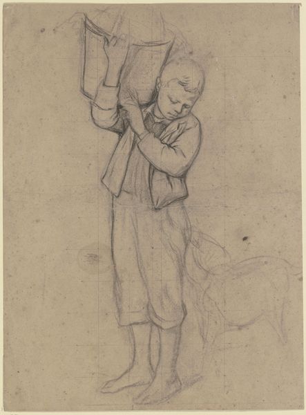 Curator: At first glance, this pencil drawing seems remarkably simple and unaffected. Editor: It evokes a certain quiet melancholy. The figure almost seems burdened, his posture slumped, but simultaneously dignified. Tell me, what more can you reveal about this work? Curator: The drawing is titled “Gammel fisker tager hatten af og studie af sammes hoved” or “Old Fisherman Taking Off His Hat and Study of the Same Head," attributed to Wilhelm Marstrand, created sometime between 1810 and 1873. The artwork resides here at the SMK, Statens Museum for Kunst. Editor: Marstrand's decision to render this subject in pencil lends a soft, almost ethereal quality to the scene. Note the diagonal lean to the man’s form; it is elegantly, deliberately done, creating depth while implying the invisible line of labor to which the fisherman is bound. The rough materiality gives a subtle grace. Curator: From a historical perspective, it’s fascinating to consider how Marstrand elevates what might otherwise be perceived as a mundane subject, the figure of a common fisherman, into something worthy of artistic contemplation. There’s a clear romantic sensibility at play. This raises questions about how the romantic era viewed and valued the working class. Editor: Yes, there’s certainly an idealized element in the careful articulation of the man’s clothing and his wistful expression. Marstrand clearly intends to elicit a sense of empathy. He positions the pitcher just so, for compositional purposes as a centering feature that helps tie these scenes together and provide context to our view. Curator: It is a poignant exploration of the intersection between the individual and his social role during that epoch. Editor: I agree. Thinking purely in terms of form, Marstrand has really provided a nuanced, engaging rendering. I will consider its message more fully during my next viewing. Curator: Indeed. It offers rich terrain for considering social values.