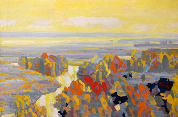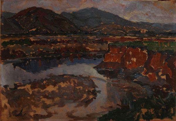 Maurice Denis made this painting, La plage rouge, with oil on canvas and wow, those reds! There's something about the way Denis approaches color here that feels so intuitive. The palette is both earthy and vibrant, like the world seen through rose-tinted glasses. Look how he's layered the paint, thick in some areas, thin in others, creating this amazing texture that makes you want to reach out and touch it. It’s like he’s building the image, brick by brick, with these little dabs and strokes. I am particularly drawn to the way the light plays on the rocks in the foreground. Each brushstroke feels deliberate, yet there's also this wonderful sense of spontaneity, as if he’s just letting the paint do its thing, guiding it along, letting it be what it wants to be. There’s something so freeing about that approach. It makes me think a little of Bonnard's landscapes, but with a more grounded, almost spiritual quality. For Denis, art wasn't just about representation, it was about capturing a feeling, an emotion, and I think he really nailed it here.