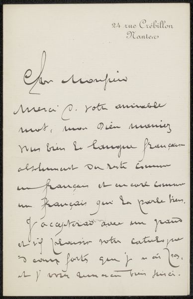 Gustave Bourcard wrote this letter to Philip Zilcken with ink on paper. Bourcard, a contemporary of the Impressionists, was an art critic and collector, and Zilcken was a Dutch artist and writer. This letter reveals the social networks that sustained the art world of late 19th-century Europe. Bourcard thanks Zilcken for an interesting catalog, likely from an exhibition. It speaks to the growing institutionalization of art. As art moved from private patronage to public display, catalogs became essential for documentation and interpretation. This created new roles for critics and historians. The formal tone of the letter reflects the cultural norms of the time, emphasizing respect and intellectual exchange. Art history at its best places such exchanges in their social context. Archival research into the correspondence of artists, critics, and collectors can reveal much about the social conditions that shaped artistic production and reception.